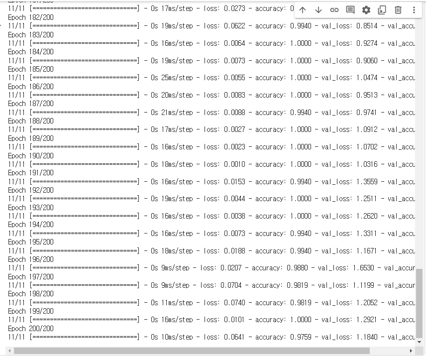 h2 = model3.fit(X_train, y_train, epochs=200, batch_size=16, validation_data=(X_val, y_val))