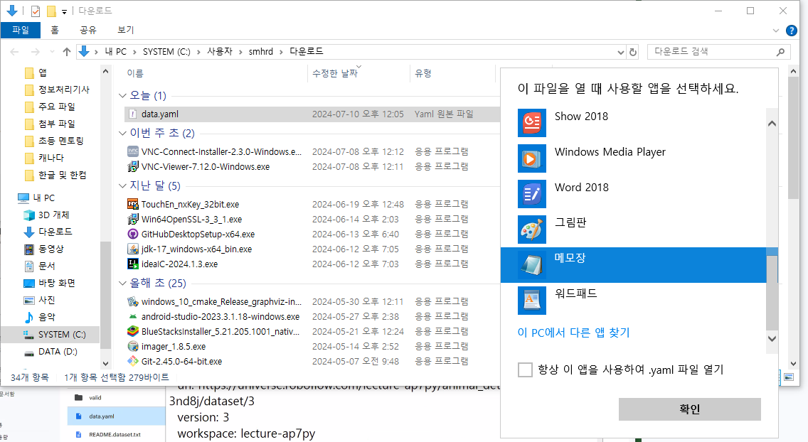 - 📌 data : 사용할 데이터 (yaml 파일명)