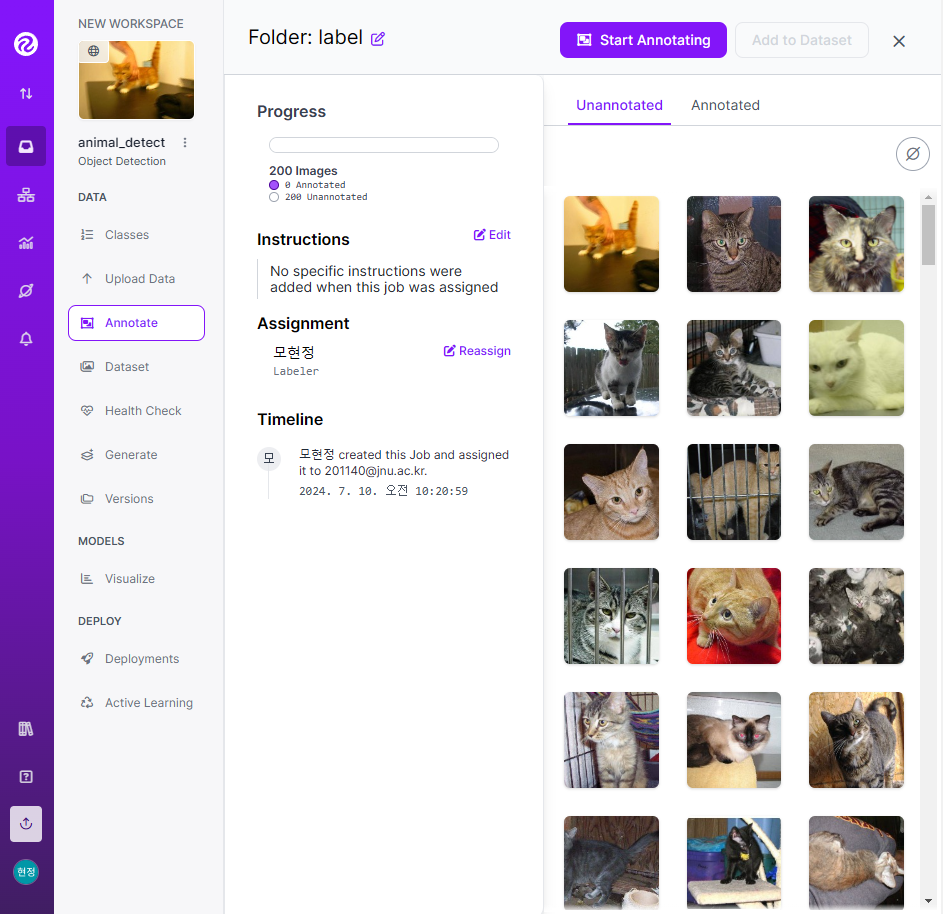 - 개/고양이 이미지 100개씩 총 200개를 라벨링