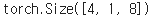 Wx = np.random.random((hidden_size, input_size)) # (8, 4) 크기의 2D 텐서 생성, 입력에 대한 가중치