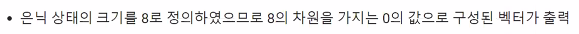 print(hidden_state_t) # 8의 크기를 가지는 은닉 상태, 현재는 초기 은닉 상태로 모든 차원이 0 값을 가짐