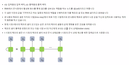 hidden_state_t = oputput_t # 은닉층에서의 계산 값을 다음 시점으로 전달