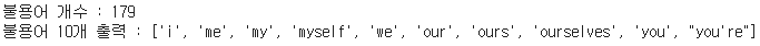 - 토큰화 작업에서 종종 영어권 언어의 아포스트로피(')는 압축된 단어를 다시 펼치는 역할