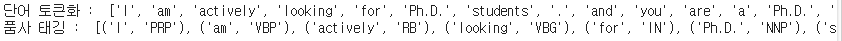 - NLTK는 영어 코퍼스를 토큰화하기 위한 도구들을 제공