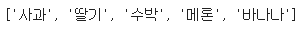 text = "사과 딸기 수박 메론 바나나"